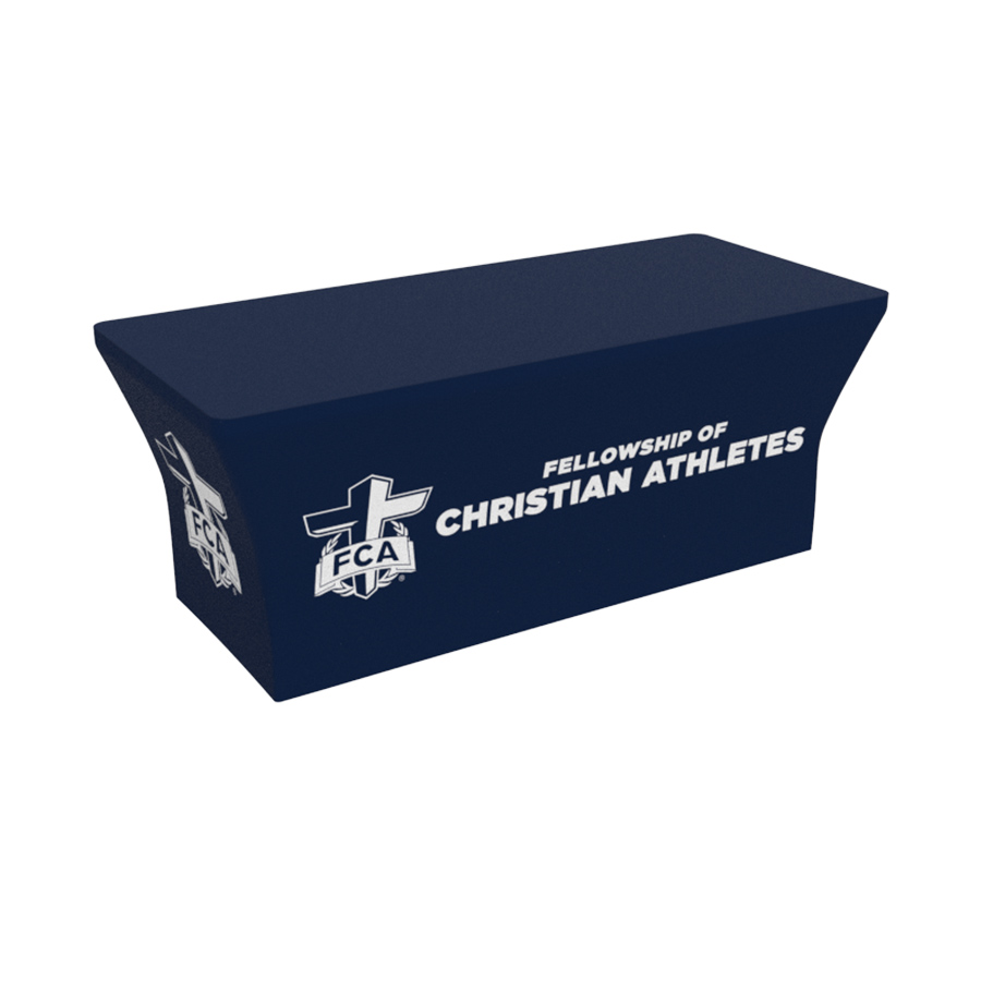 One unique approach to your table cover design is to incorporate product pricing directly onto the top section. This not only frees up space from catalogs but also entices your audience to come closer to read the details. Proven to increase traffic, custom table covers are a staple for many companies at every event.